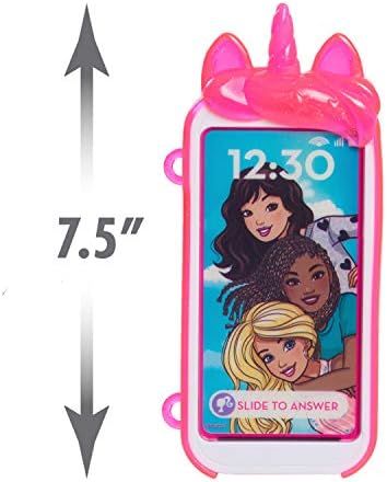 Amazon Com Barbie Unicorn Play Phone Set With Lights And Sounds Unicorn Phone Case And Wristlet Toy Cell Phone For Kids By Just Play Pink Toys Games